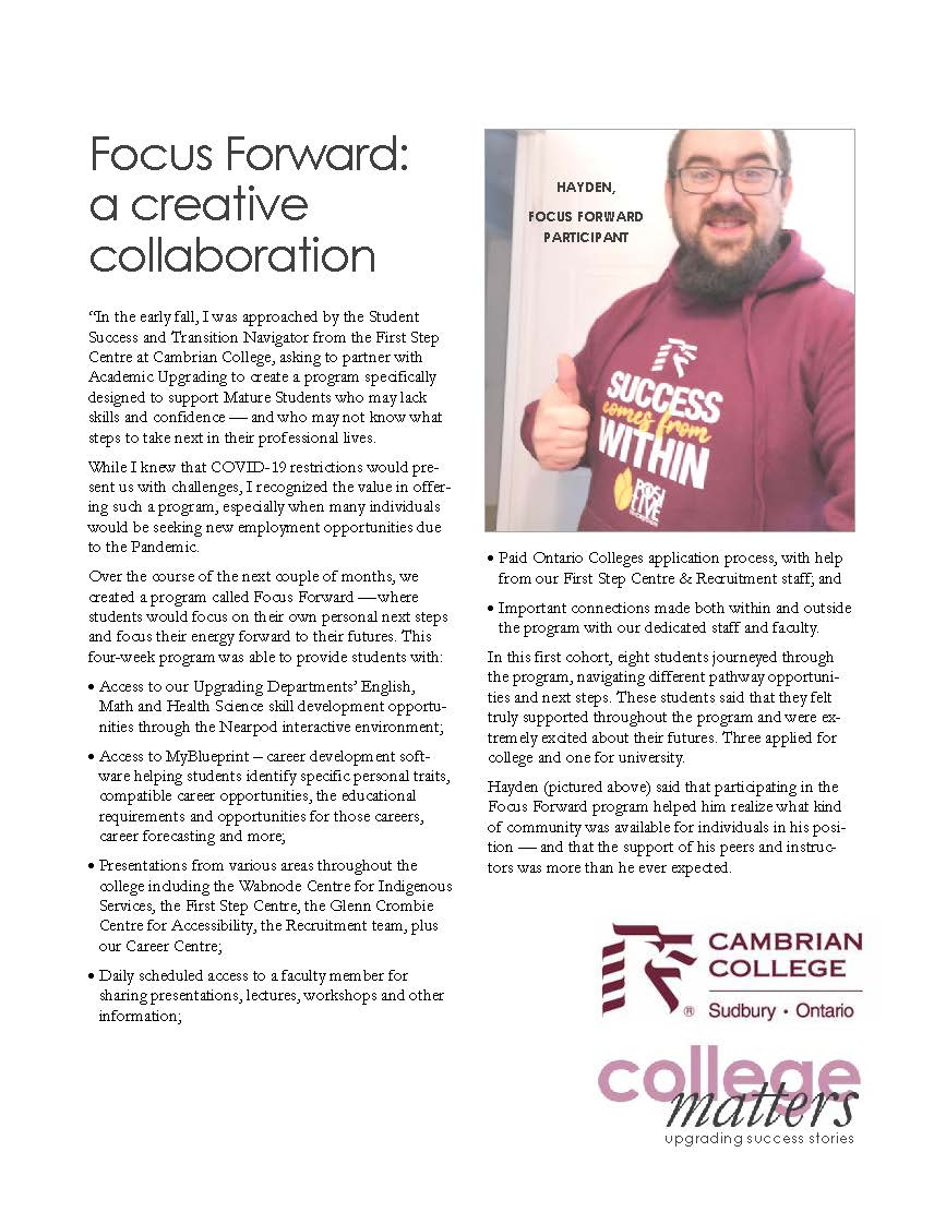 CAMBRIAN COLLEGE SUCCESS STORIES