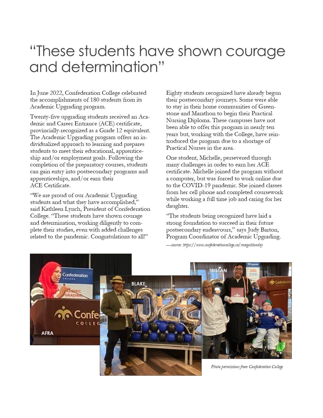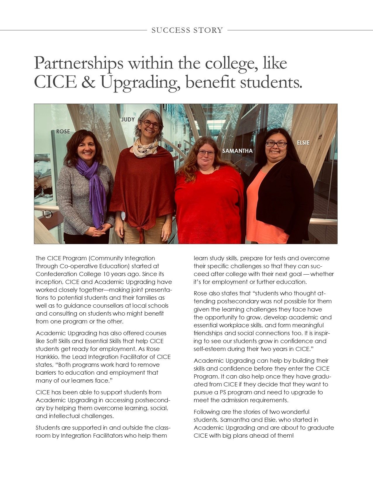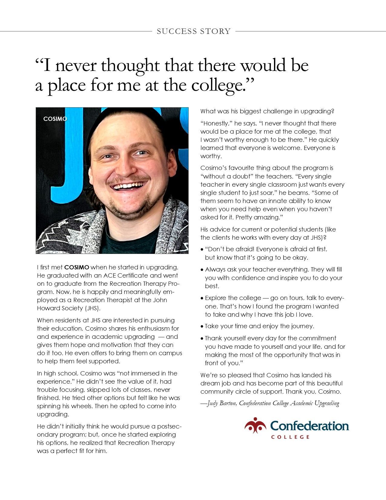 CONFEDERATION COLLEGE SUCCESS STORIES