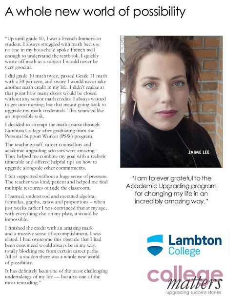 PROVIDING LEADERSHIP, ADVOCACY, SUPPORT & RESOURCES TO ONTARIO PUBLIC COLLEGES DELIVERING ACADEMIC UPGRADING PROGRAMS